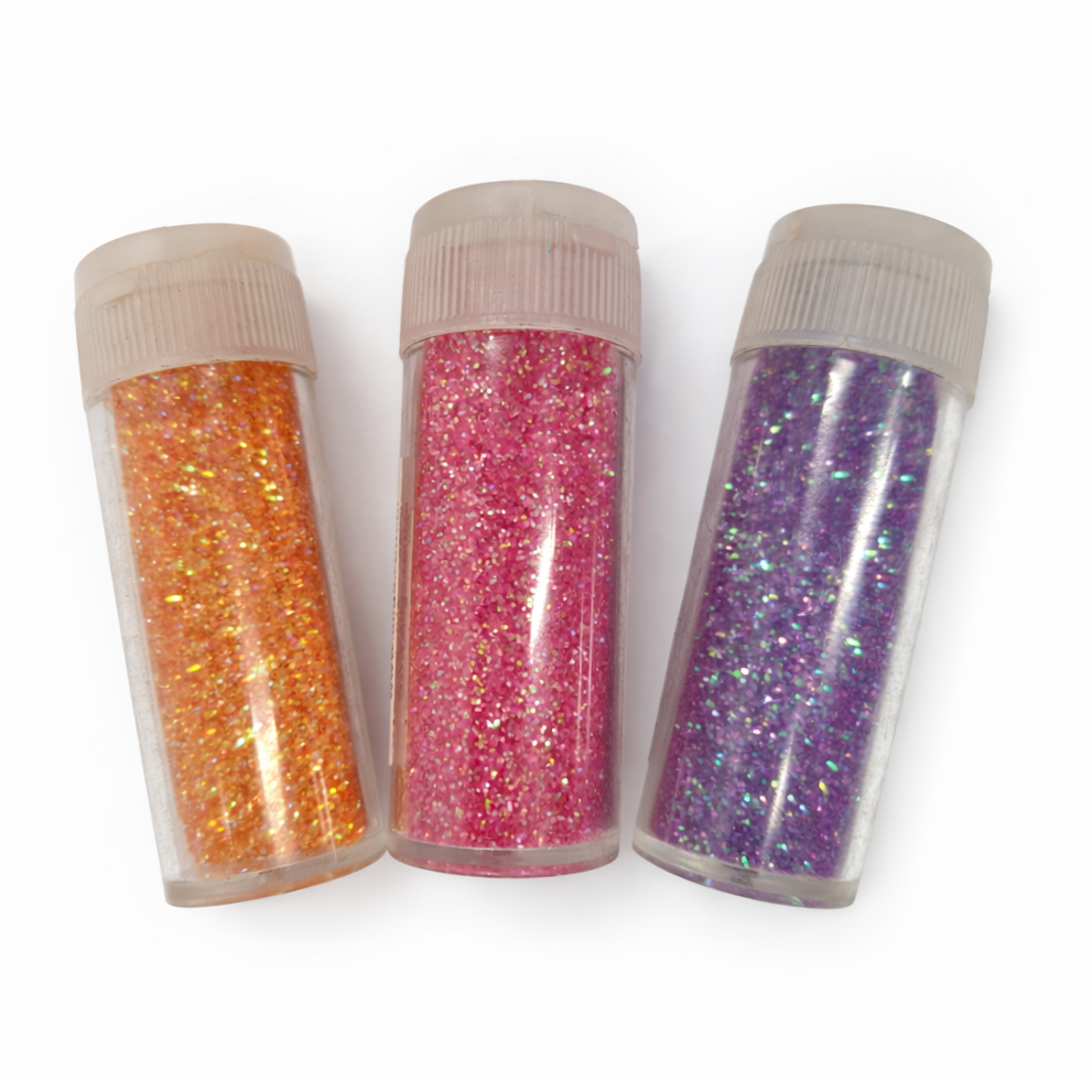 Zestaw 3 brokatów sypkich w wygodnych pojemnikach typu solniczka to idealny wybór dla osób tworzących dekoracje, projekty DIY oraz ozdoby okolicznościowe. Intensywne, połyskujące kolory – pomarańczowy, różowy i fioletowy – pięknie odbijają światło, tworząc efekt WOW w każdej kompozycji.