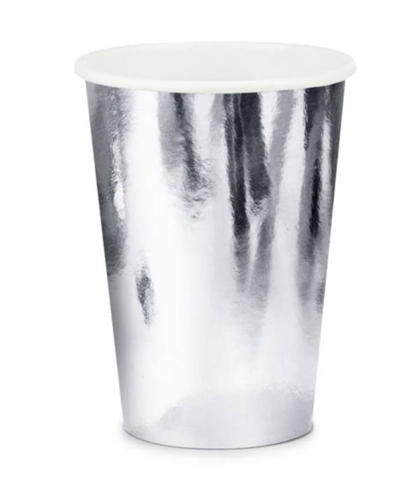 KOMPLET 6 szt. Papierowych jednorazowych SREBRNYCH (metalizowanych) kubków