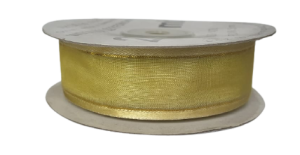 2m WSTĄŻKA SZYFONOWA 25mm PISTACJA ze złotym brzegiem ozdobna, dekoracyjna