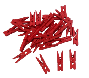 30szt mini KLAMERKI SPINACZE CZERWONE 2,5cm drewniane