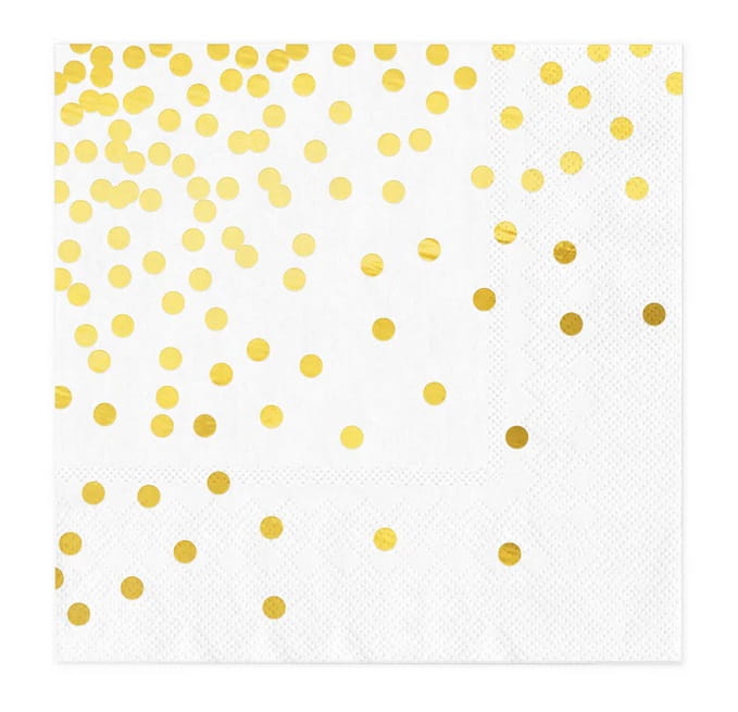 BIAŁE serwetki w ZŁOTE KROPKI 10szt 33cm x 33cm serwetki papierowe, jednorazowe