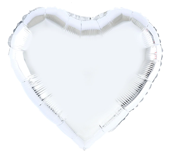 BALON FOLIOWY W KSZTAŁCIE SERCA W SREBRNYM BŁYSZCZĄCYM KOLORZE,