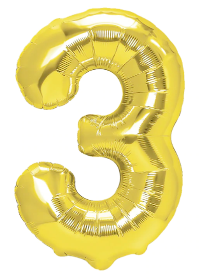 Balon foliowy cyfra 3 ZŁOTY 100 cm, duże balony na hel lub powietrze 1m