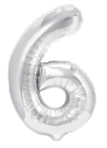 Balon foliowy cyfra 6 SREBRNY 100 cm, duże balony na hel lub powietrze 1m