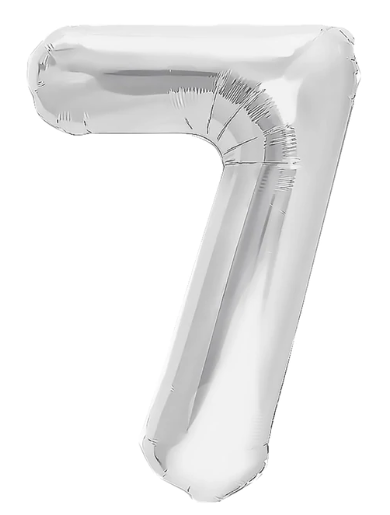 Balon foliowy cyfra 7 SREBRNY 100 cm, duże balony na hel lub powietrze 1m
