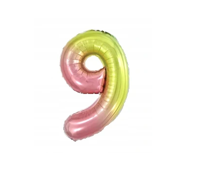 Balon foliowy cyfra 9 Tęczowy Kolorowy 40cm Urodziny
