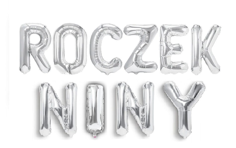 Zestaw balonów tworzących napis: ROCZEK + IMIĘ, składające się z 4 liter.