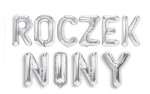 Balony Srebrne ROCZEK + imię 4 LITERY Napis srebrny z balonów na 1 urodziny Baner z balonów, Balonowy baner, Napis z balonów