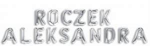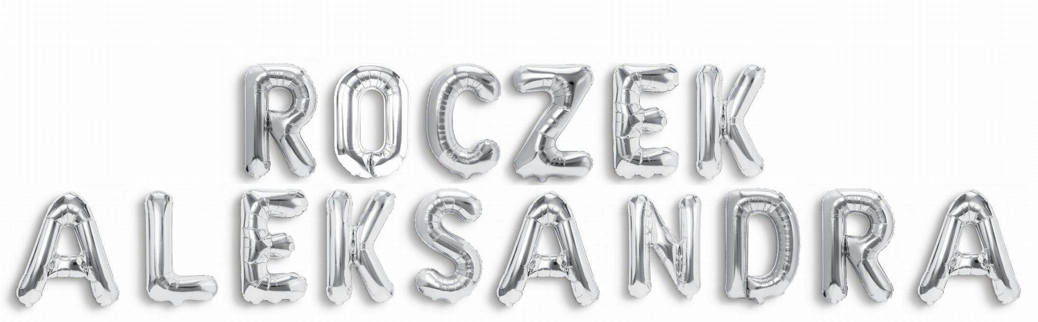 Zestaw balonów tworzących napis: ROCZEK + IMIĘ, składające się z 10 liter (w odmienionej formie np. Jakuba, Angeliki).