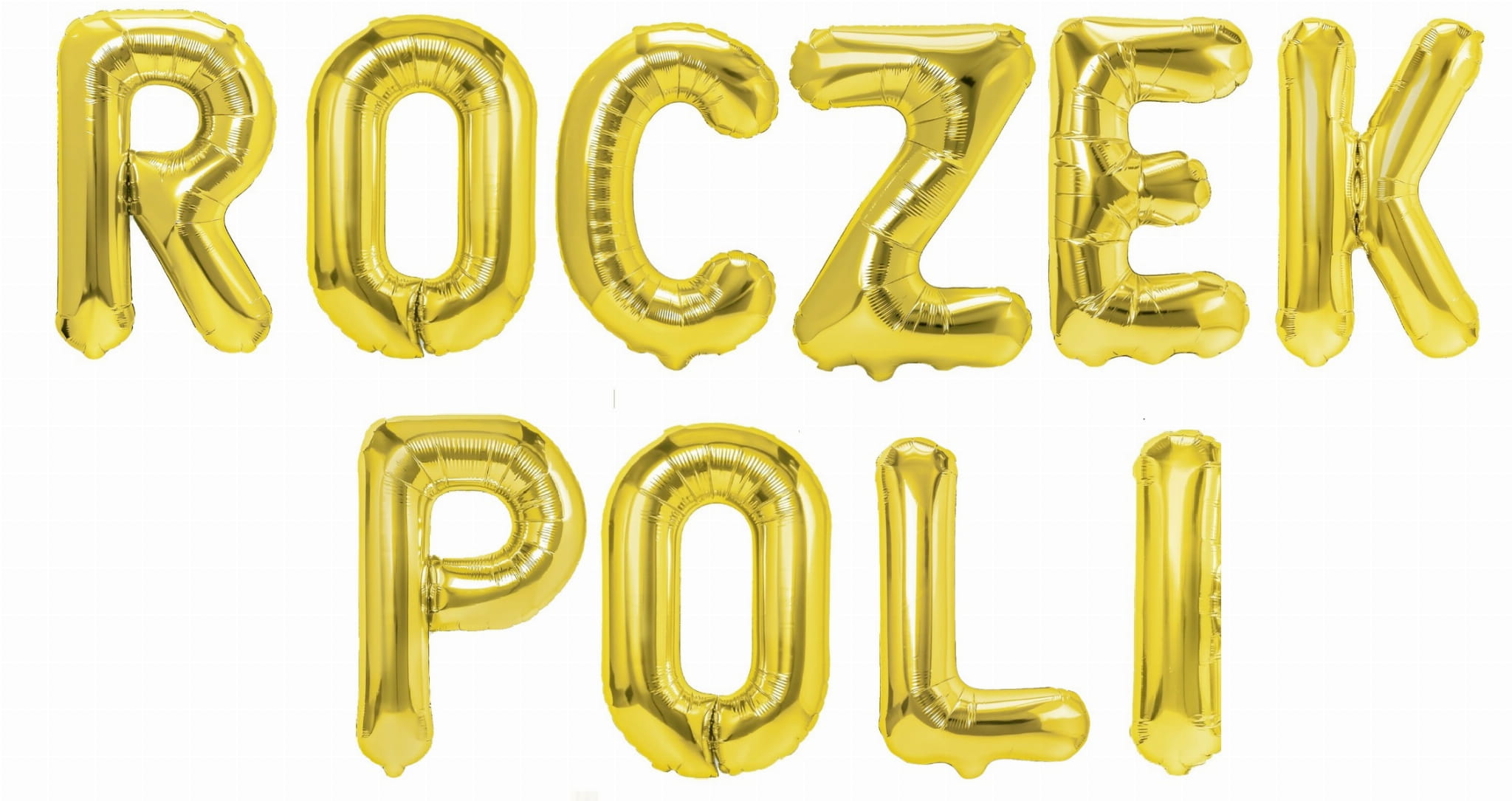 Zestaw balonów tworzących napis: ROCZEK + IMIĘ, składające się z 4 liter (w odmienionej formie np Jana, Zosi, Neli).