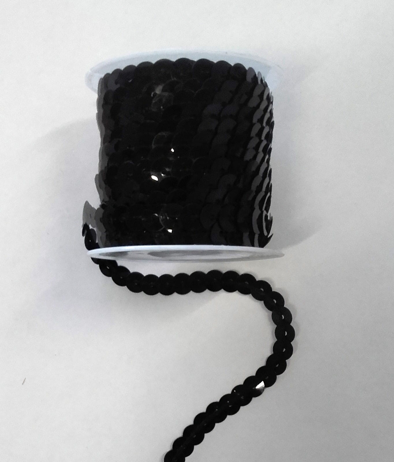 CEKINY NA SZNURKU CZARNE BŁYSZCZĄCE taśma z cekinami na szpuli ok. 4,5 m C08