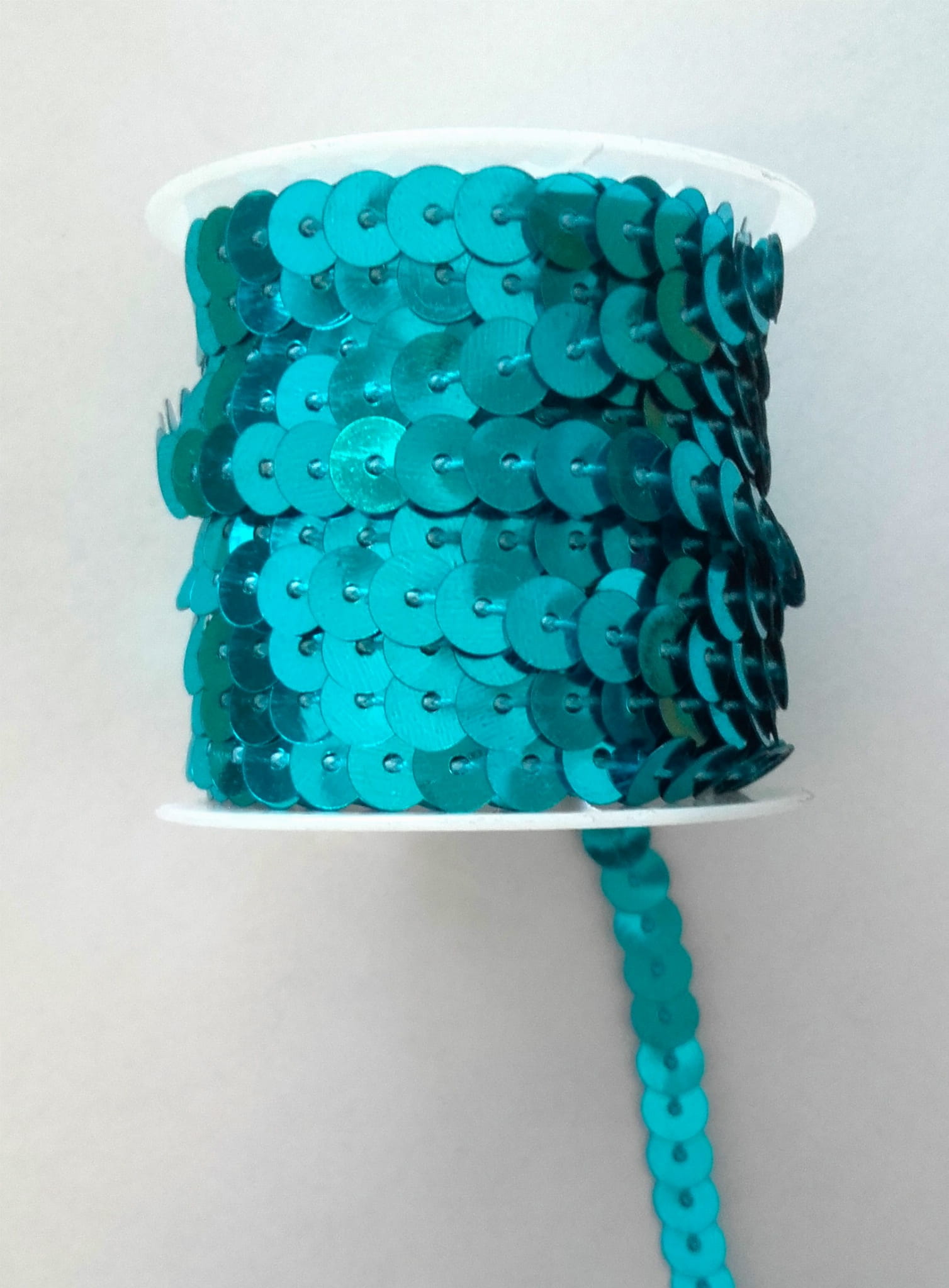 CEKINY NA SZNURKU TURKUSOWE BŁYSZCZĄCE taśma z cekinami na szpuli ok. 4,5 m C13