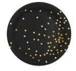 CZARNE TALERZ OKRĄGŁY w ZŁOTE KROPKI, talerzyki 18cm 6szt Talerze urodzinowe, imprezowe