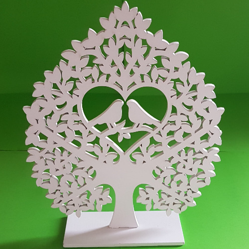 DRZEWKO drewniane białe dekoracyjne 22 cm stojące na podstawce z PTAKAMI