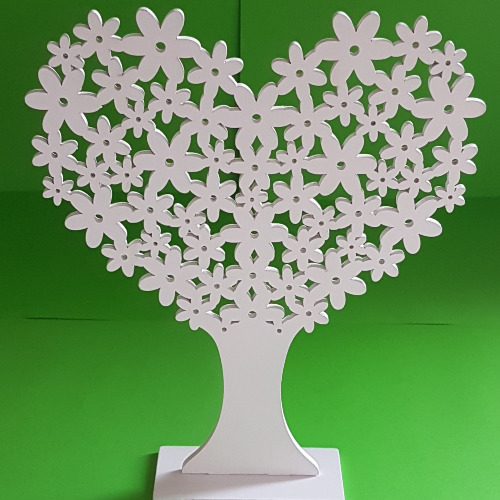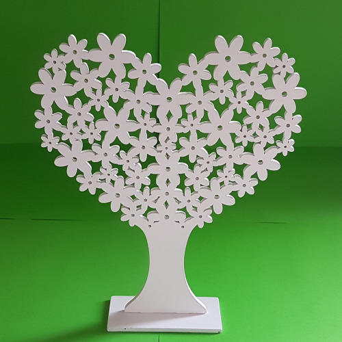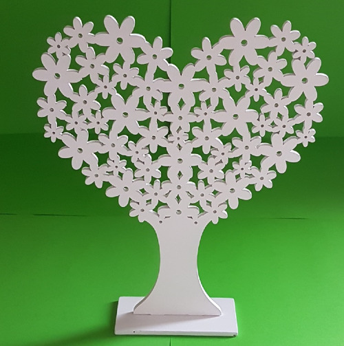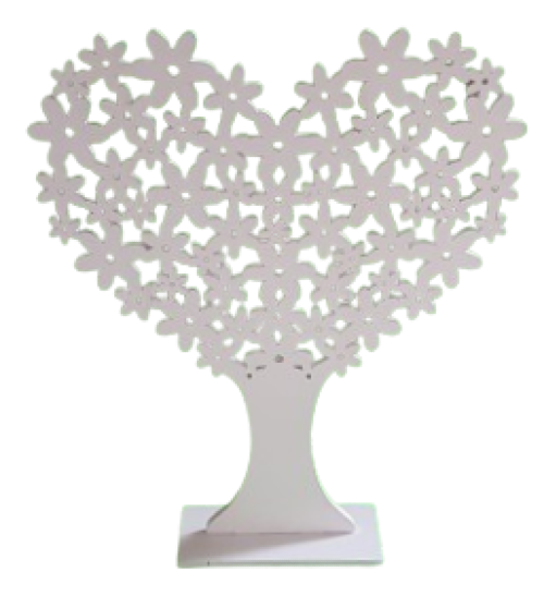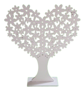 Eleganckie, drewniane białe drzewko ozdobne, ażurowe w kształcie serca to wyjątkowa dekoracja stojąca, która doskonale uzupełni wystrój wnętrza przez cały rok.