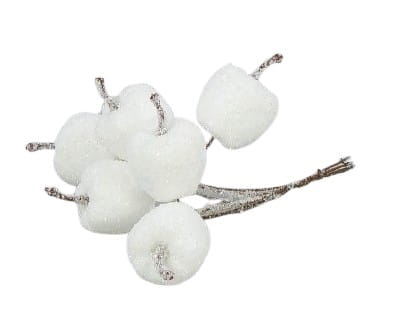 JABŁKA BROKATOWE BIAŁE 2cm 6szt na piku Jabłuszka błyszczące na druciku