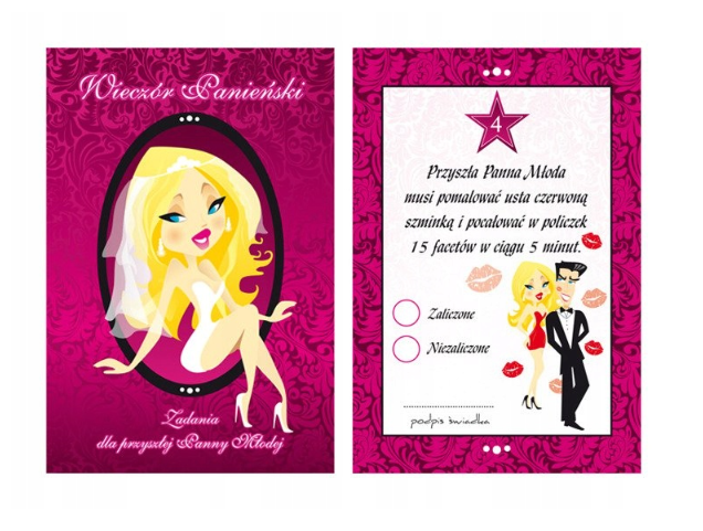 KARTY WIECZÓR PANIEŃSKI, z zadaniami dla pryszłej Panny Młodej.
