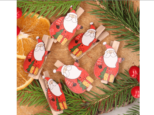KLAMERKI drewniane MIKOŁAJE 6szt naturalne drewno, spinacze