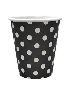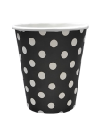 KUBKI jednorazowe CZARNE, W BIAŁE KROPKI 10szt Kubeczki papierowe urodzinowe, imprezowe