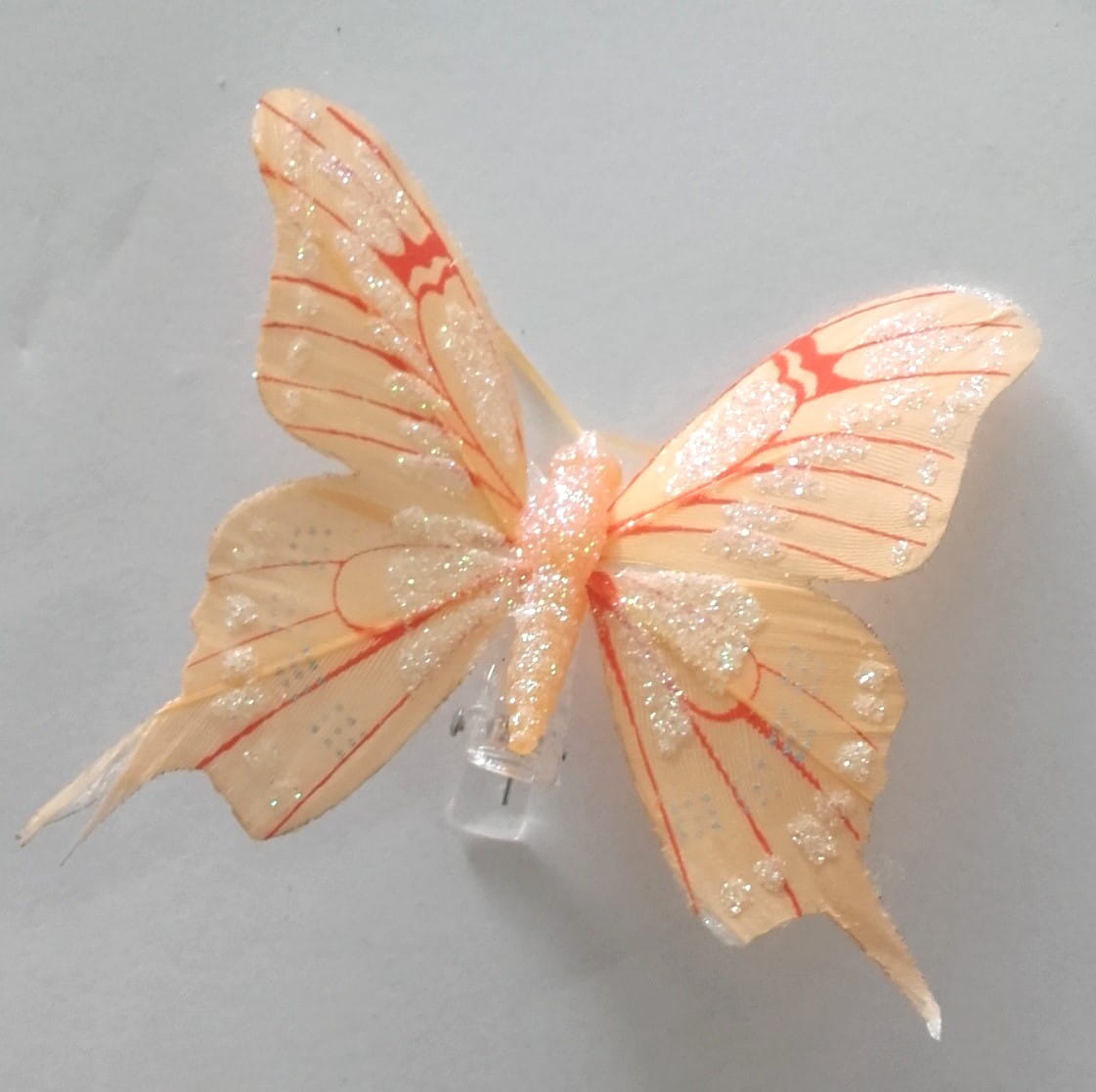MOTYL NA KLIPSIE 7cm BRZOSKWINIOWY, do wianków, dekoracji, kompozycji wiosennych
