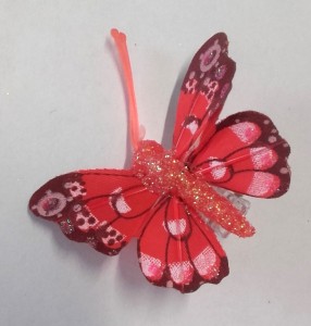 MOTYL NA KLIPSIE MINI 4cm CZERWONY z brokatem, motyl do wianków, dekoracji, kompozycji wiosennych