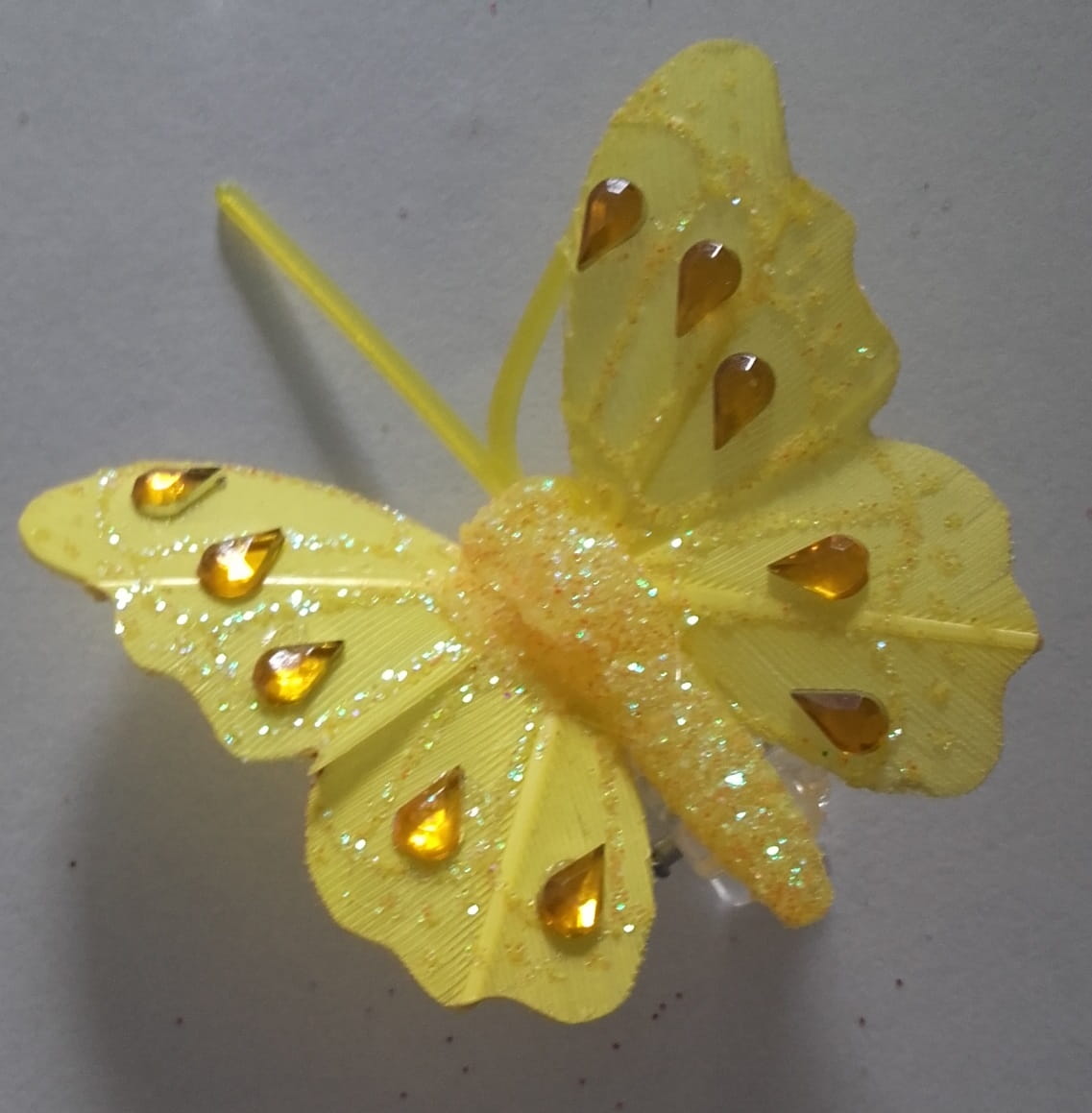 MOTYL na klipsie - ŻYWY ŻÓŁTY, zdobiony brokatem i cyrkoniami