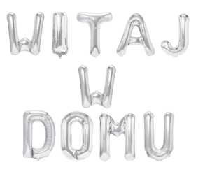 Napis z 10 balonów foliowych w SREBRNYM kolorze: