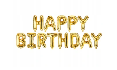 Stwórz niezapomnianą atmosferę przyjęcia urodzinowego dzięki efektownemu napisowi z balonów HAPPY BIRTHDAY w eleganckim, złotym kolorze.