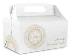 Tekturowe pudełko na ciasto, tort i inne słodkości z okazji I Komunii Świętej.