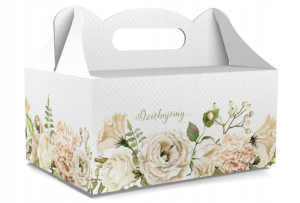 Pudełko opakowanie na ciasto weselne ślubne pudełka na placki, słodkości wzór KREMOWE POLNE KWIATY
