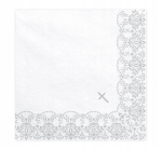 PIĘKNE SERWETKI W BIAŁYM KOLORZE Z SREBRNYM NADRUKIEM KORONKI: