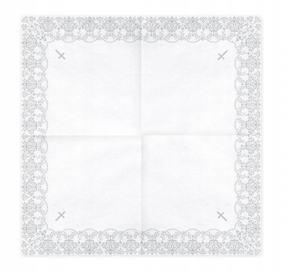 SERWETKI BIAŁE srebrna koronka 20szt 3W komunia, chrzest Serwetki komunijne ze srebrnym ornamentem