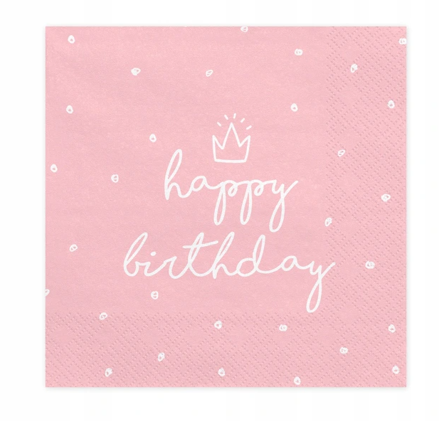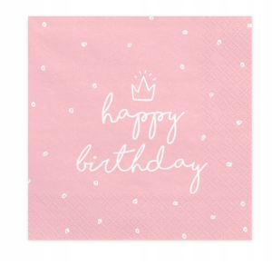 SERWETKI RÓŻOWE JASNE z białym napisem HAPPY BIRTHDAY 33cm x 33cm 20szt. Serwetki papierowe, jednorazowe