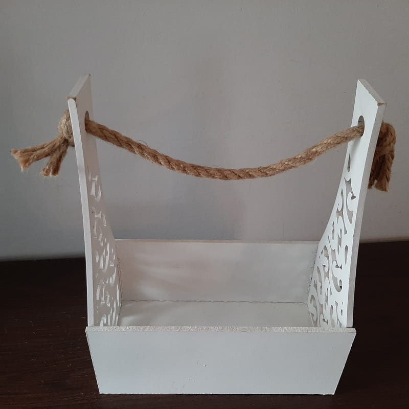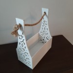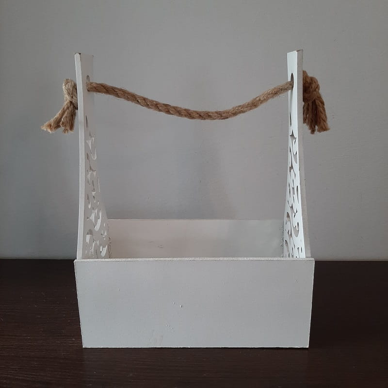 SKRZYNKA DREWNIANA AŻUROWA Biała Prostokątna Dekoracyjna skrzynia z drewna na prezenty Ozdobna Osłonka Pojemnik Dekoracyjny prezentowy
