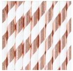 SŁOMKI do napojów 10szt PASKI BIAŁE, ROSE GOLD retro rurki do picia papierowe