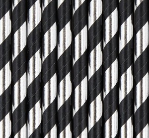 PAPIEROWE SŁOMKI w paski czarno-srebrne