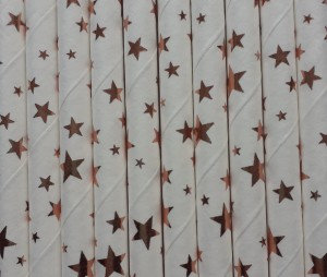 KOMPLET 10szt. papierowych BIAŁYCH SŁOMEK w gwiazdki rose gold