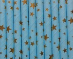 KOMPLET 10szt. papierowych BŁĘKITNYCH SŁOMEK w złote gwiazdki