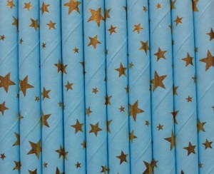 SŁOMKI papierowe 10szt BŁĘKITNE, ZŁOTE GWIAZDKI rurki do picia, napojów
