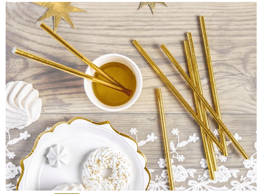 SŁOMKI złote 10szt papierowe rurki do picia urodziny