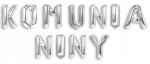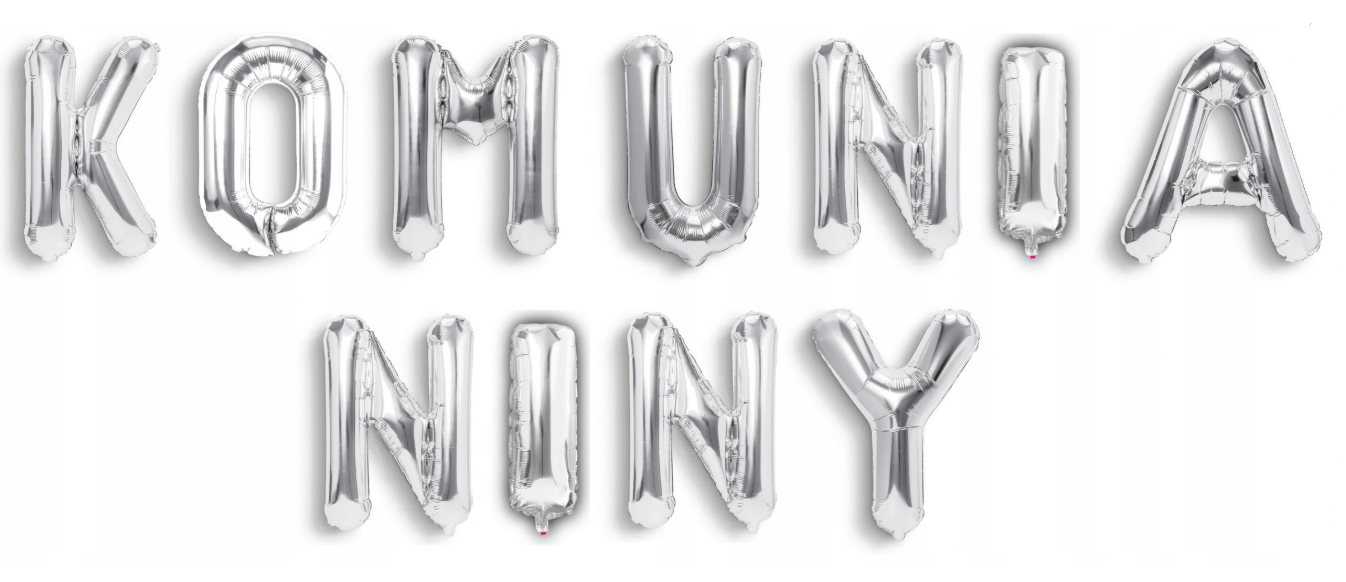 Napis KOMUNIA + IMIĘ DZIECKA (4 litery) z balonów foliowych w kolorze SREBRNYM: