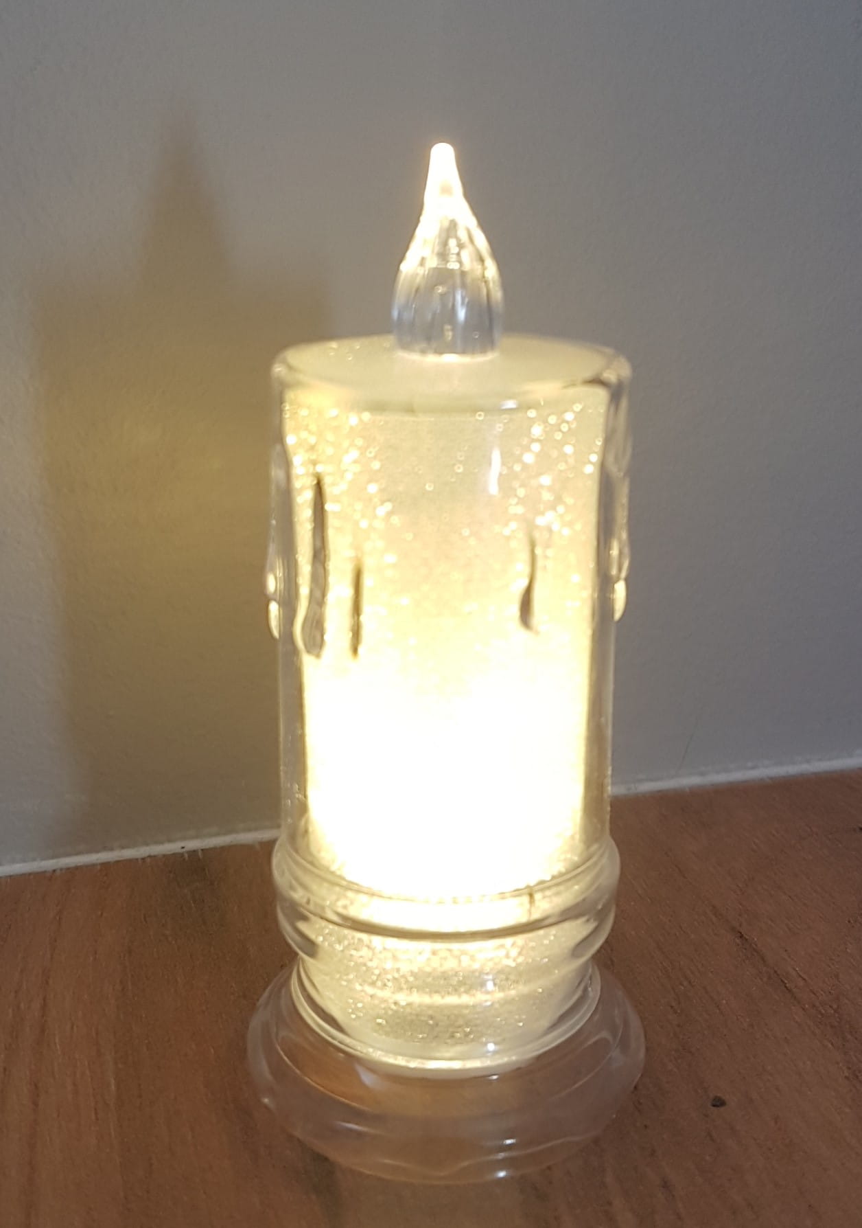 Świeczka, wkład LED wykonana jest z tworzywa sztucznego plastiku w biało przezroczystym kolorze z płomieniem.