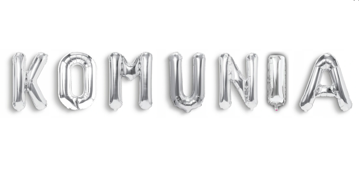 Napis KOMUNIA z balonów foliowych w srebrnym kolorze 40cm