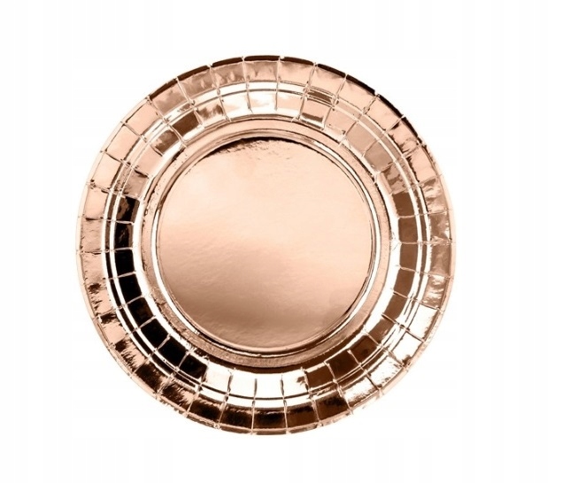 TALERZYKI jednorazowe 18cm 6szt ROSE GOLD - różowe złoto Małe Talerze papierowe imprezowe, urodzinowe