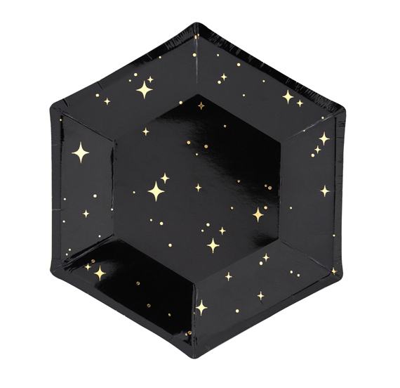 TALERZYKI jednorazowe 20cm 6szt CZARNE W GWIAZDKI, KROPKI ZŁOTE Małe Talerze papierowe imprezowe, urodzinowe, na Wieczór Panieński