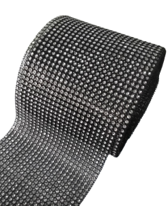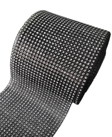 TAŚMA CYRKONIOWA 12 cm x 3 m CZARNA + SREBRNE CYRKONIE, dżety Pas dżetowy OSTATNIA SZTUKA!!