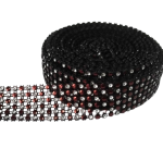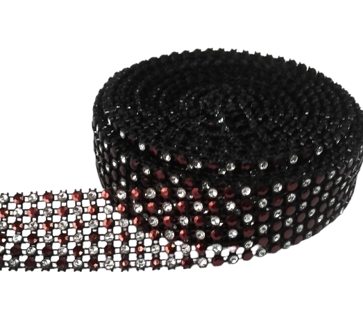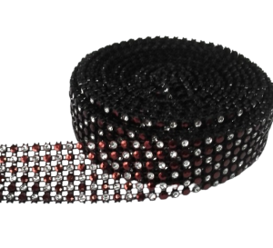 TAŚMA CYRKONIOWA 3cm x 4,5m CZARNA, SREBRNE + BORDOWE CYRKONIE, dżety Pas dżetowy