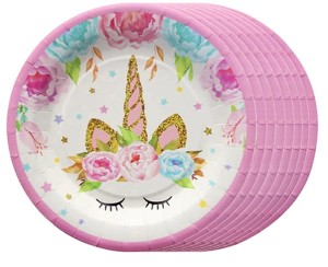ZESTAW 6szt papierowych, jednorazowych TALERZYKÓW Z JEDNOROŻCEM