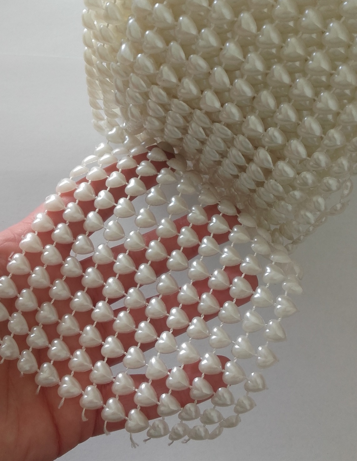 Taśma dżetowa 10cm x 1m perłowa, pas dżetowy perłowe serca wypukłe