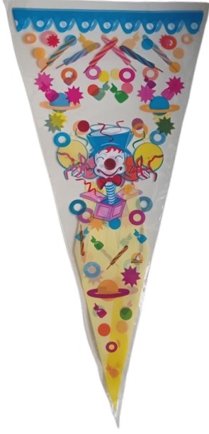 Pakiet 8 szt foliowych opakowań w kształcie trójkąta z kolorowym nadrukiem na prezenty.
